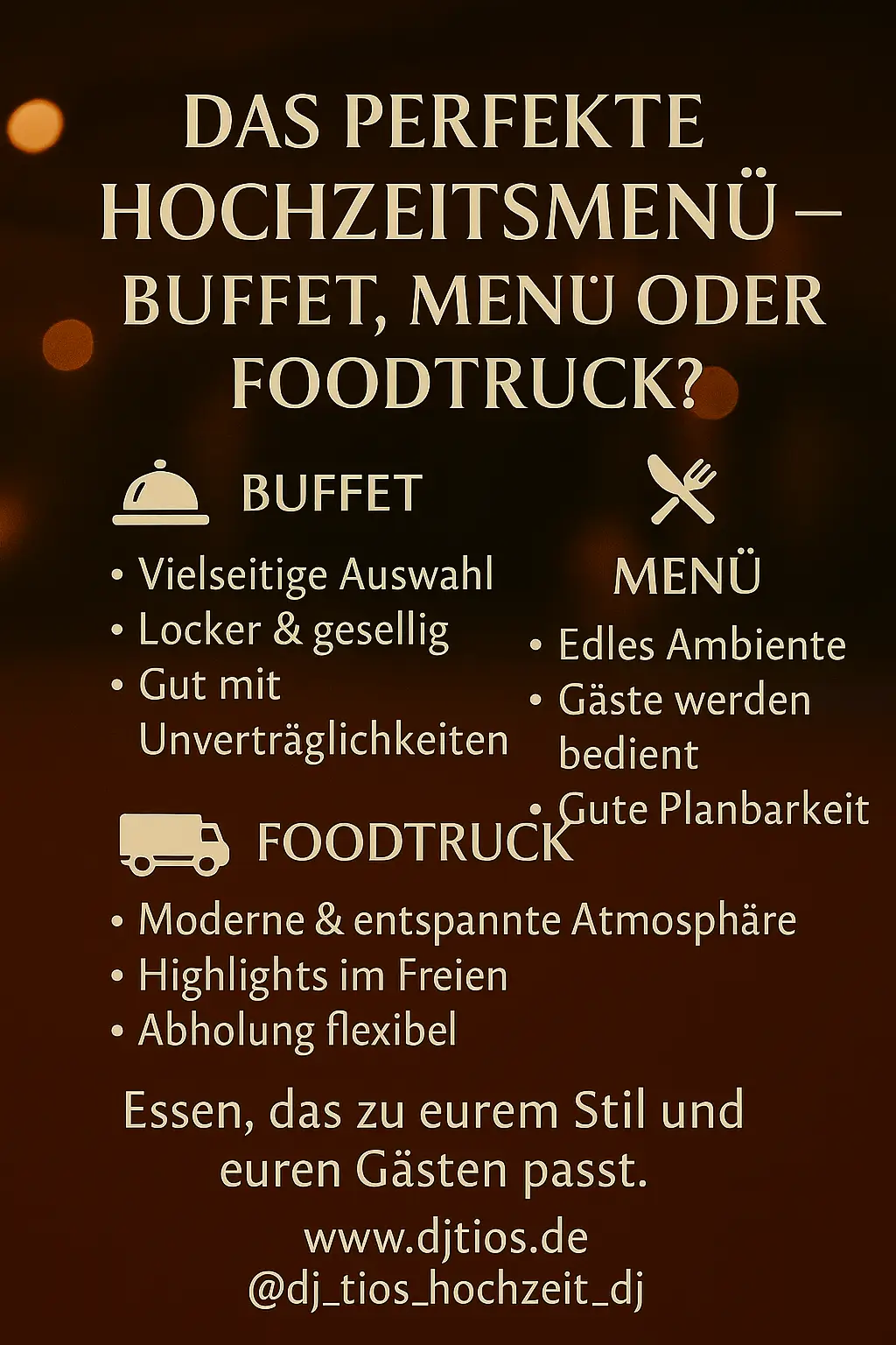 Essen verbindet – und gerade bei Hochzeiten ist das gemeinsame Schlemmen ein zentraler Teil der Feier. Ob stilvolles Dinner, lockeres Buffet oder trendiger Foodtruck: Die Wahl eures Hochzeitsmenüs prägt nicht nur den Abend, sondern oft die ganze Stimmung.